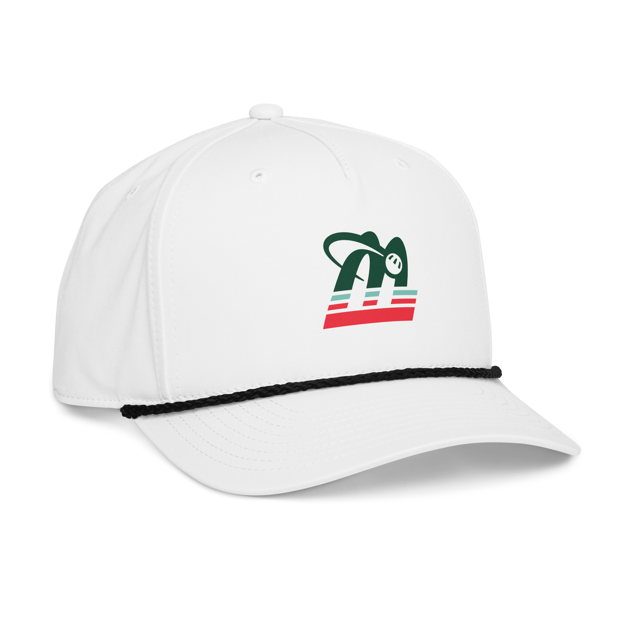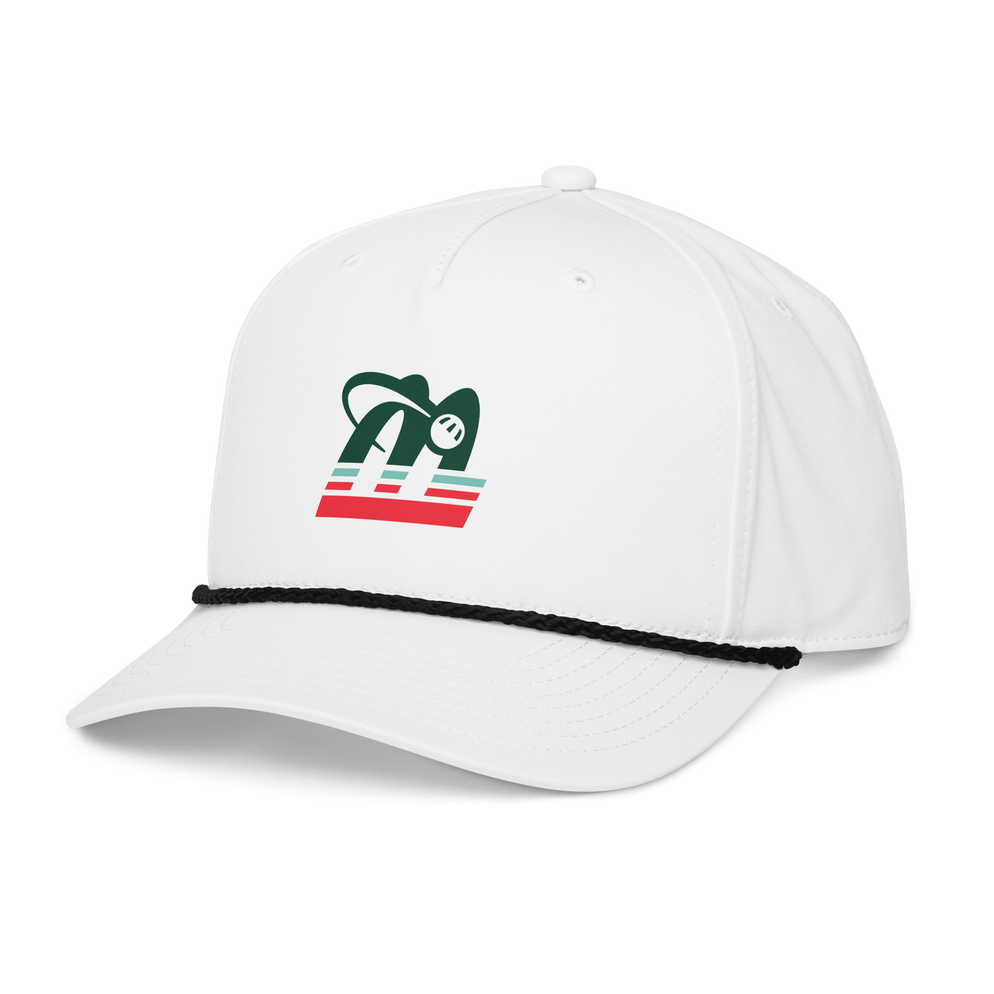 • Braided rope detailing on the bill